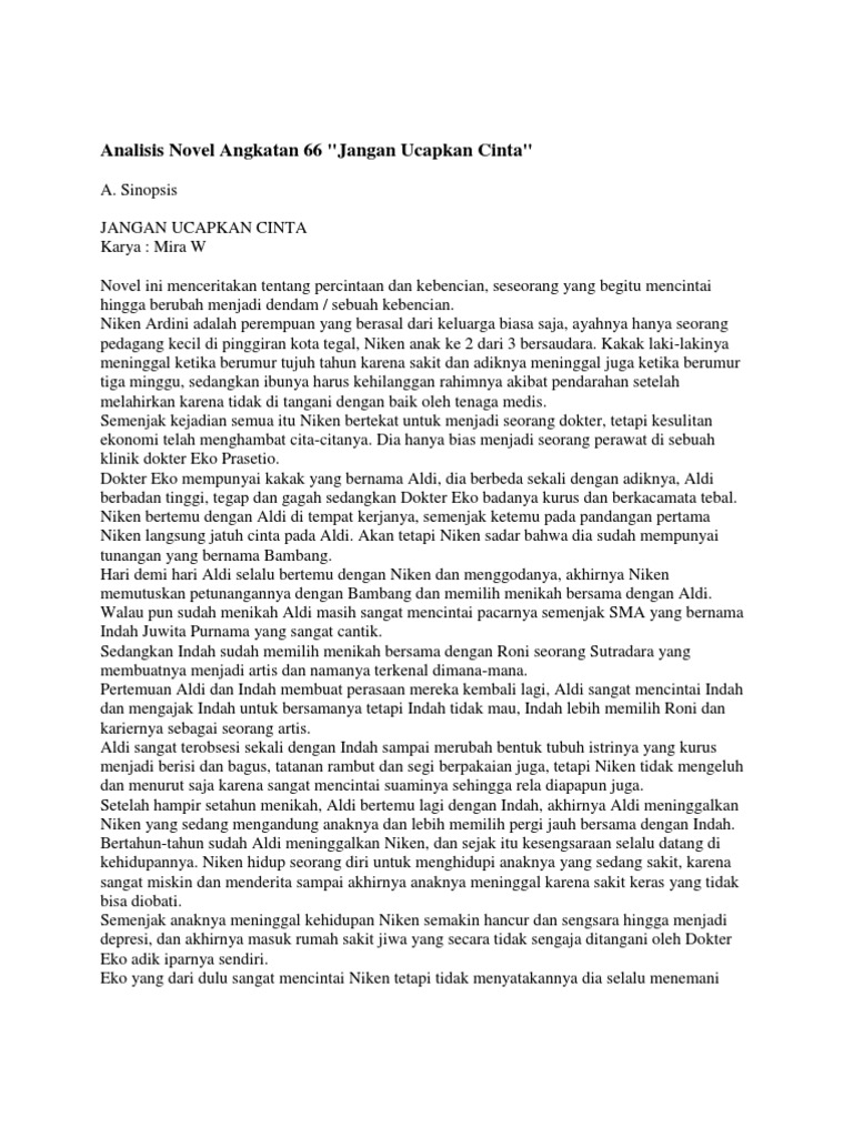 Kakak mengambil keputusan itu karena ego atau professional kerja yang kau. Malamnya ara mengajakku jalan, sekalian mentraktirku. Adapun yang menjadi contoh analisis adalah novel 'laskar pelangi' karya andrea hirata. Sinopsis ikut bab novel tirani. Sawijining dinten, wagiman angsal tugas patroli. Ada kerinduan yang menggelegak dan membara dalam dadanya. Novel ini terbit pertama kali pada tahun 1981. Namun di sore ketika seharusnya rehat menanti musim perburuan, ia terperosok dalam tragedi. Garuda putih yaiku durjana kang kondhang ing surabaya. Ana punya contoh analisis unsur intrinsik dan ekstrinsik novel indonesia nih buat antum yang lagi galau ngerjain tugas bahasa indonesia =d silakan dibaca ya! Awan putih yang bergerombol itu seumpama kumpulan jutaan malaikat yang sedang berzikir dalam diam. Tvm merpati tak pernah ingkar janji ini sendiri ditayangkan hari ini rabu 26 desember 2013 pukul 10.45. Sebagian besar bukunya memang bercerita tentang patah hati.